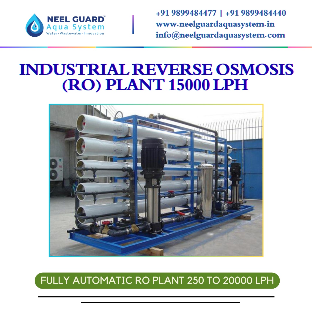 Neel Guard Aqua Systems presents a heavy-duty 15,000 LPH Industrial Reverse Osmosis (RO) Plant, engineered for very large industrial and commercial operations that require a continuous, reliable, and high-volume supply of purified water. Designed with advanced RO membrane technology and robust industrial components, this system ensures superior performance, energy efficiency, and long service life. ⚙️ Product Overview The 15,000 LPH Industrial RO Plant is specially designed to treat high-TDS borewell, brackish, and process water. It efficiently removes dissolved salts, hardness, silica, heavy metals, organic contaminants, and microorganisms, delivering consistent high-quality RO water meeting stringent industrial process requirements. ⭐ Key Features 🔹 💧 Capacity: 15,000 Litres Per Hour (LPH) 🔹 🧪 High-Rejection RO Membrane Technology for maximum salt removal 🔹 🔄 Heavy-Duty Multistage Pre-Treatment System (Pressure Sand Filter, Activated Carbon Filter, Micron Filtration) 🔹 ⚡ Industrial High-Pressure Pumps with energy-efficient operation 🔹 🛡 Robust Skid-Mounted Construction (MS Powder-Coated / Stainless Steel options) 🔹 📊 Advanced PLC-Based Control Panel with alarms, interlocks & real-time monitoring 🔹 🔧 Designed for 24×7 Continuous Operation with Low Maintenance 🏭 Applications 🏭 Large-Scale Manufacturing & Process Industries 💊 Pharmaceutical, Chemical & API Plants 🥤 Beverage, Bottling & Food Processing Units 🏥 Multi-Specialty Hospitals & Medical Campuses 🏨 Large Hotels, Malls & Integrated Commercial Complexes 🎓 Industrial Parks, SEZs & Institutional Facilities 🌱 Key Benefits ✅ High-volume, uninterrupted RO water production ✅ Protects boilers, cooling towers & critical industrial equipment ✅ Minimizes scaling, corrosion & downtime ✅ Optimized water recovery and energy efficiency ✅ Cost-effective solution for large-scale water purification 🛠 Customization Options 🟢 Single Pass / Double Pass / Multi-Pass RO Design 🟢 Fully Automatic PLC-SCADA Operation 🟢 Online TDS, Conductivity, Flow & Pressure Monitoring 🟢 MS / SS / FRP Skid & Piping Configurations 🟢 Integrated Pre-Treatment, Softening & Post-Treatment Systems 🏢 Manufacturer & Industrial Water Solutions Partner Neel Guard Aqua Systems 📞 Contact: +91 9899484477 | +91 9899484440 | +91 9810113180 📧 Email: info@neelguardaquasystem.com, enquiry@neelguardaquasystem.com 🔰 Trusted manufacturer of Industrial RO Plants, STP, ETP & complete water and wastewater treatment solutions.